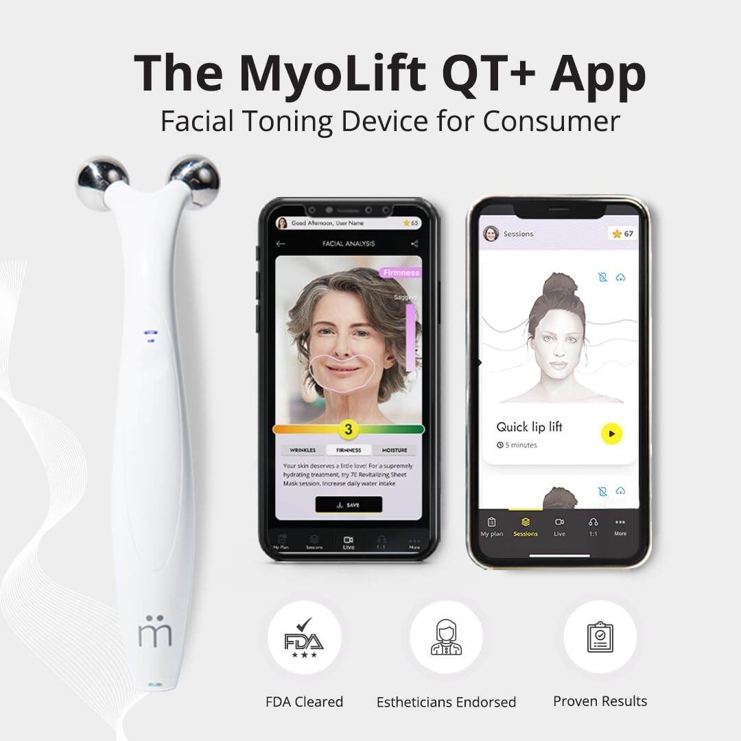 7E Wellness MyoLift QT Microcurrent Facial Device with Smart Current Technology and Smartphone App - Portable Skin Care Tools, Instant Face Lift, Anti Aging, Skin Tightening - Up to 400 Microamps