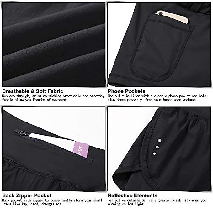 Women’s 2 in 1 Running Shorts Workout Athletic Gym Yoga Shorts for Women with Phone Pockets