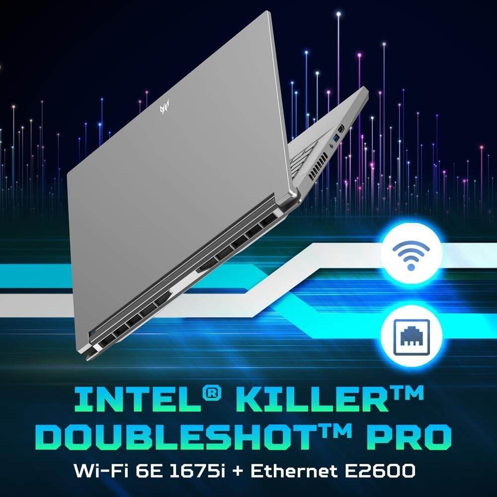 FULLY CONNECTED - Equipped with Intel Killer DoubleShot Pro featuring Wi-Fi 6E AX1675 and Killer Ethernet E2600 ensuring the most reliable link to annihilate online adversaries and secure victory. Connect your arsenal of devices using diverse USB 3.2 Gen2 ports, a lightning-fast Thunderbolt 4 USB-C and HDMI 2.1. A MicroSD Card Reader is available for added versatility.