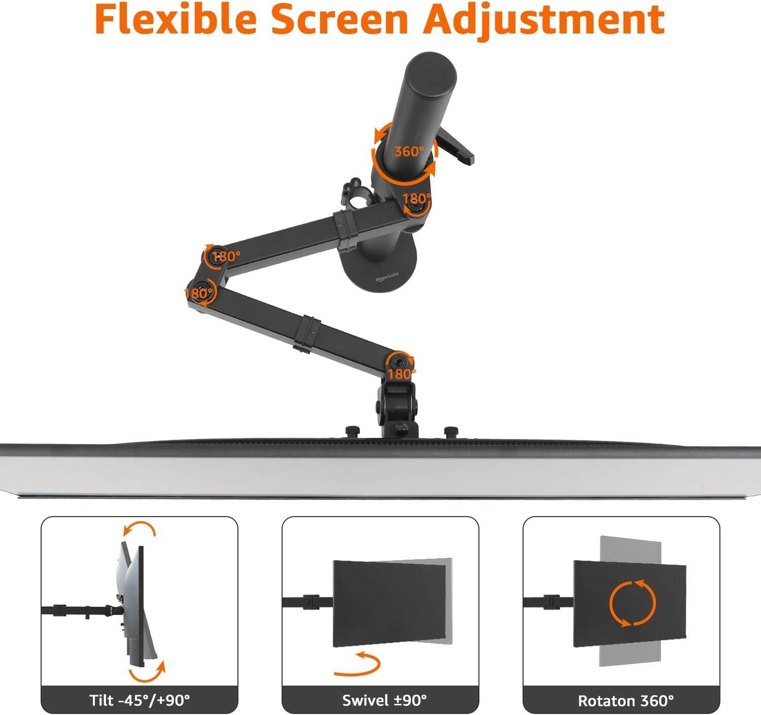 Single Monitor Desk Mount: Accommodates LCD LED screens up to 32 inches or 38 inches in ultrawide format; provides a space-efficient solution for single monitor setups