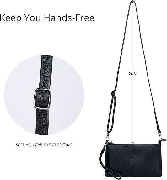 Bveyzi Genuine Leather Wristlet Purses for Women, Envelope Clutch Wallet Small Crossbody Bags for Dressy Evening