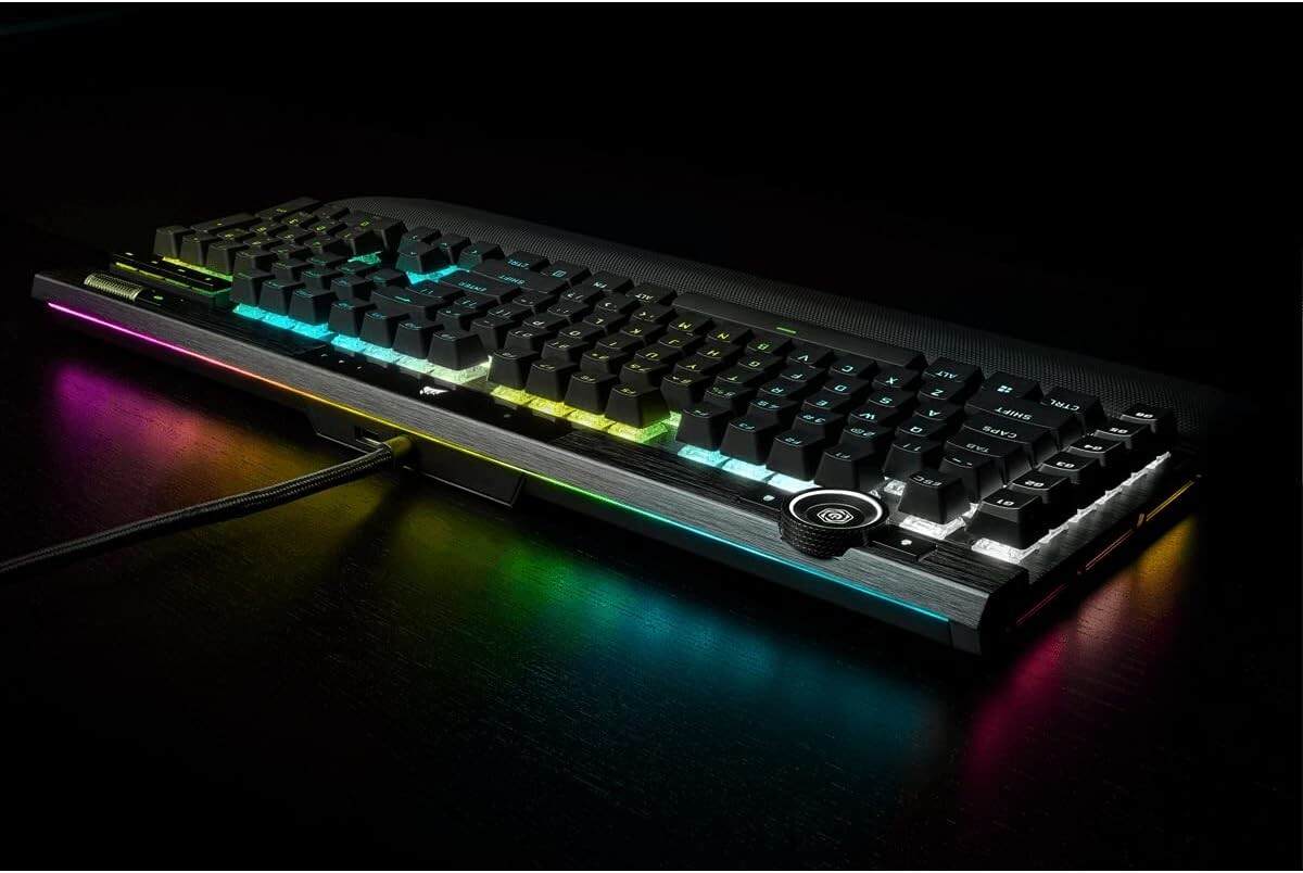 The Centerpiece of Your Setup: The CORSAIR K100 RGB boasts a refined design bolstered by a durable aluminum frame, dynamic per-key RGB backlighting, and a 44-zone three-sided LightEdge.