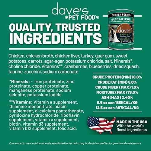 Dave's Pet Food Grain Free Wet Cat Food Bundle, Chicken Formula, Turkey, Shredded Chicken in Gravy, Turkey & Giblets Dinner, Made in USA & Canada, 5.5 oz Cans (24 Pack Each)