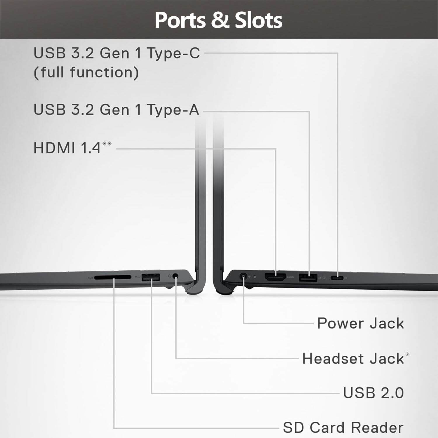 [Tech Specs] 1 x SD card reader, 1 x USB 3.2 Gen 1 Type-C, 1 x USB 3.2 Gen 1, 1 x USB 2.0, 1 x HDMI 1.4, 1 x Headset Jack, Numeric Keypad, Webcam, Wi-Fi 6