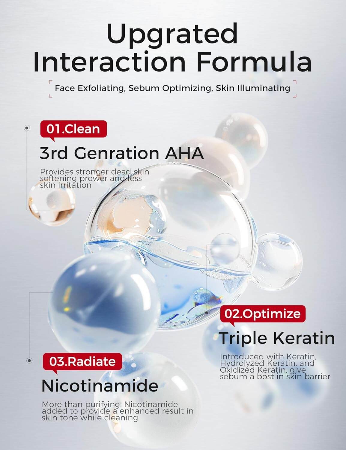 • GENTLE YET EFFECTIVE FACE EXFOLIATOR: NING DERMOLOGIE Peeling Gel combines AHA & PHA for a balanced exfoliation. AHA high-effectively dissolve dead skin cells, unclogs pores, and accelerates skin renewal, while PHA, a third-generation fruit acid, provides more gentle exfoliation, deep hydration, and antioxidant protection, improving skin texture. With continued use, pores appear more refined, and skin feels clean and refreshed without dryness or tightness.