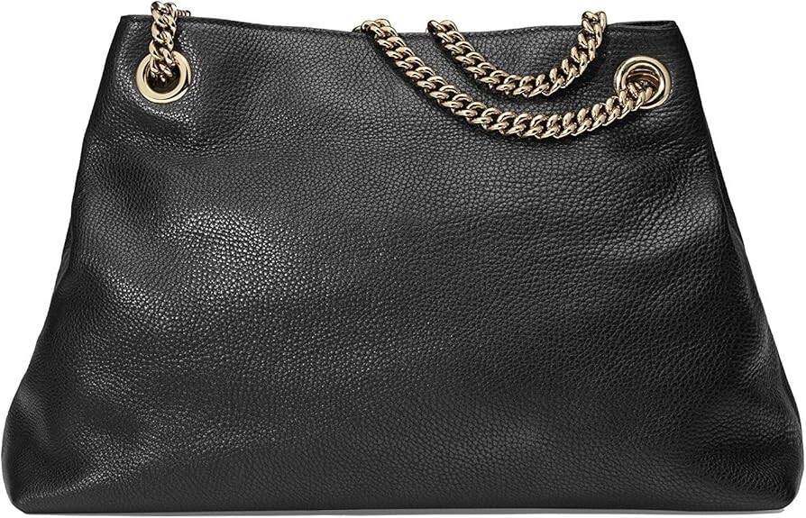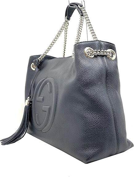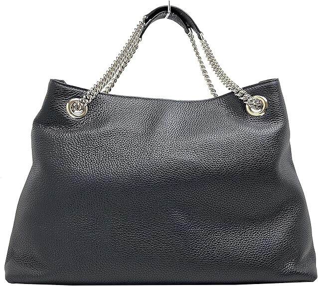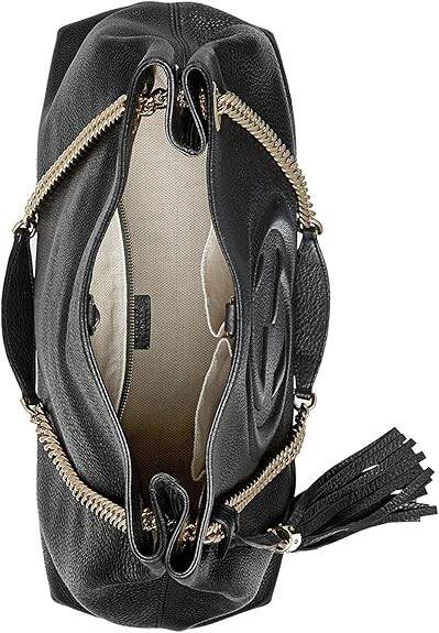 Gucci Soho Medium Black Double Leather Chain Shoulder Bag Tote Black Gold New