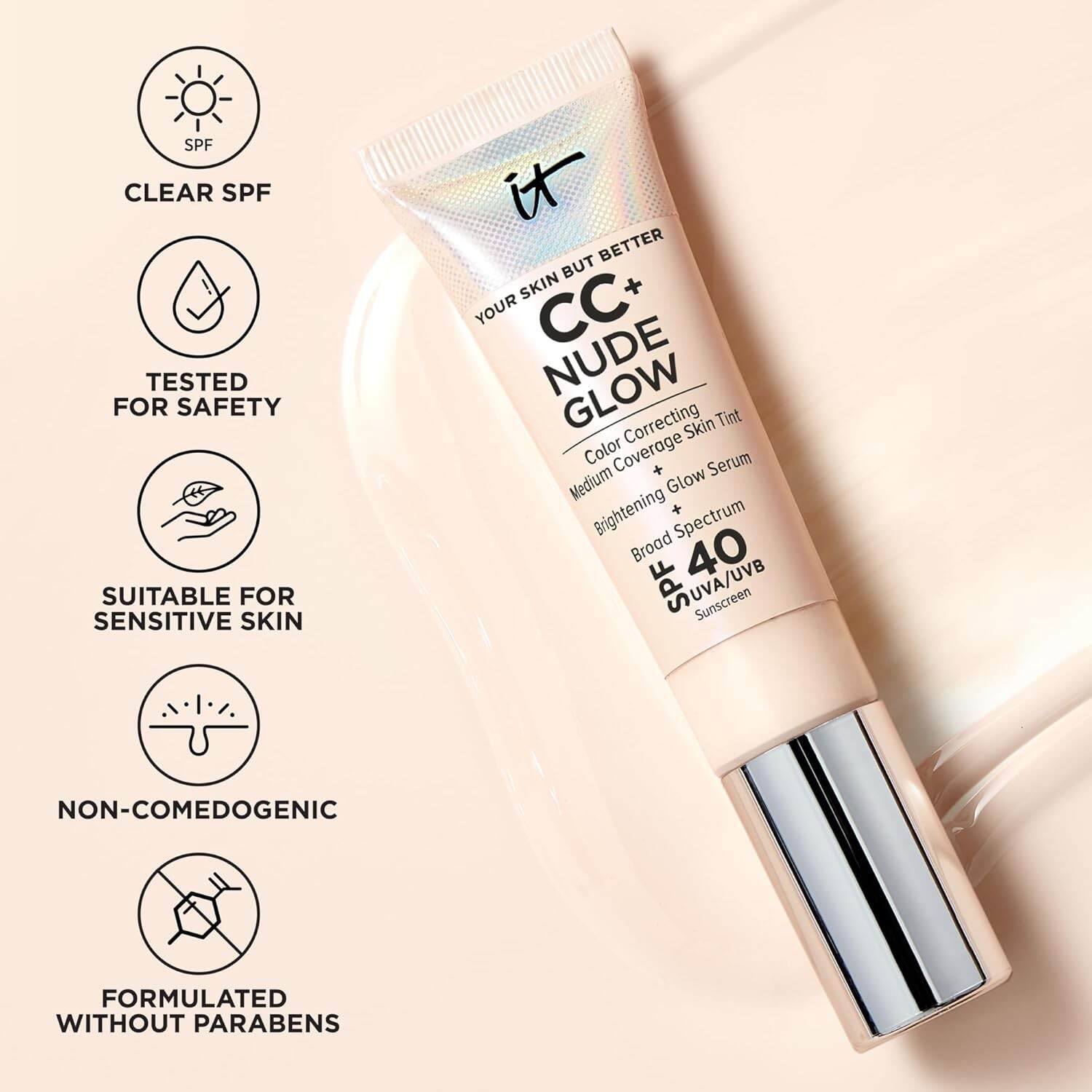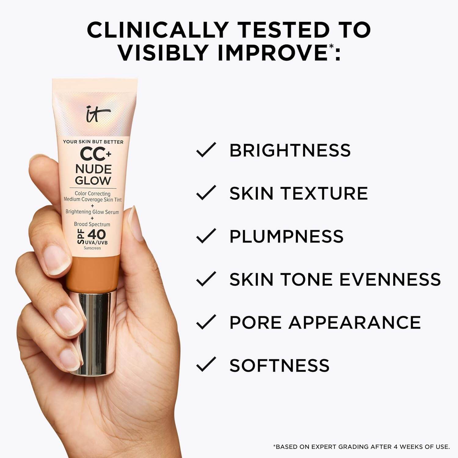 IT Cosmetics CC+ Nude Glow - Lightweight Foundation & Brightening Glow Serum with SPF 40, Medium Coverage, Formulated With Niacinamide & Hyaluronic Acid, For All Skin Types, 1.08 fl oz