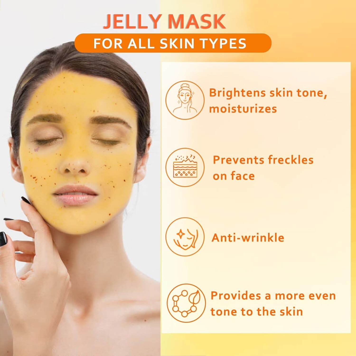 • IMPROVE YOUR SKIN QUALITY - Hyaluronic acid intensely moisturizes and revitalizes the skin. jelly facial mask's age-defying properties help in the removal of fine lines, wrinkles, and uneven skin tone. It stimulates collagen and leaves the skin softer and plumper.