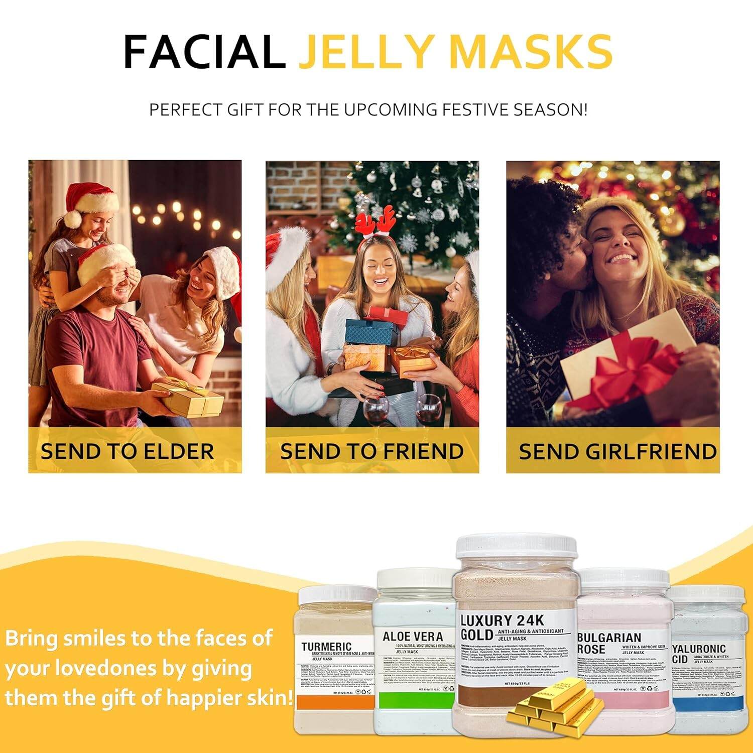 Jelly Mask for Facials Professional,Hydrating Deep Cleaning Face Mask Powder Set,(Hyalorunic Acid, Rose,24K Gold,VC Essence,Aloe Vera)