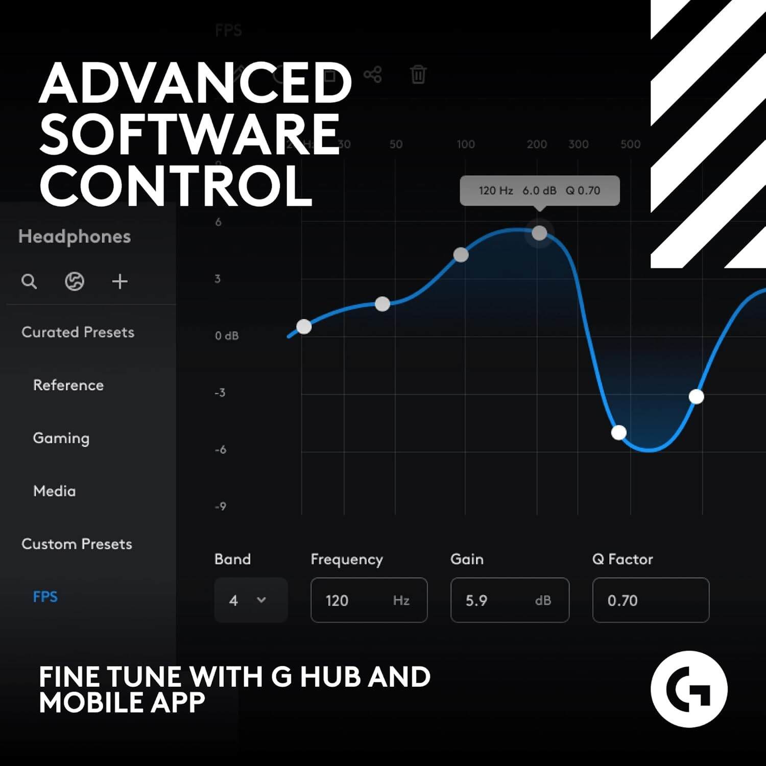 • Advanced G HUB and Mobile App Control: fine tune your gaming audio experience with 10-band parametric EQ, mic settings, noise reduction, stream output mixing and more