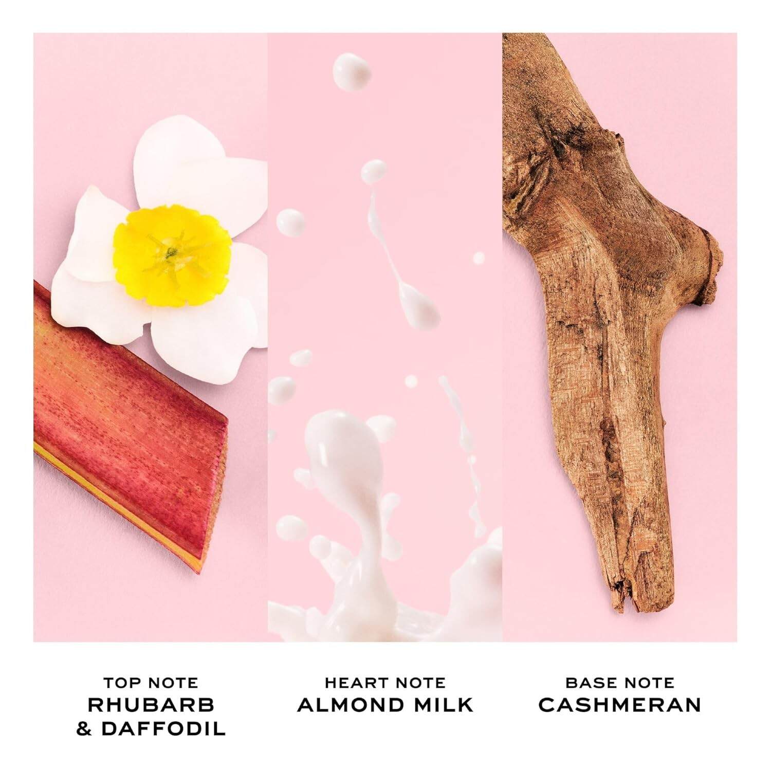 A comforting floral perfume with rhubarb and daffodil mellowed out by almond milk, cedarwood and cashmeran.
