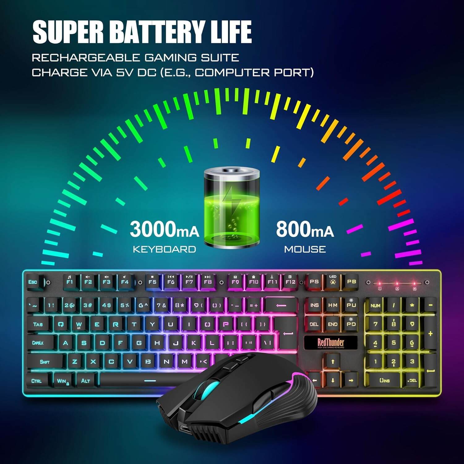 • 【High-performance 2.4G Wireless Keyboard and Mouse】Are you looking for a wireless keyboard and mouse combo that can perfectly balance work and games? RedThunder K10 rechargeable wireless gaming keyboard and mouse combo will be your best choice. 2.4G high-speed and stable transmission, ensure that it can easily deal with even the most intense battles. Note: The USB receiver is in the bottom of the mouse.