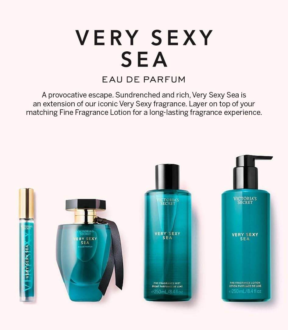 Layer on top of matching Very Sexy Sea Fine Fragrance Lotion and spray on Very Sexy Fine Fragrance Sea Mist throughout the day for a long-lasting fragrance experience.