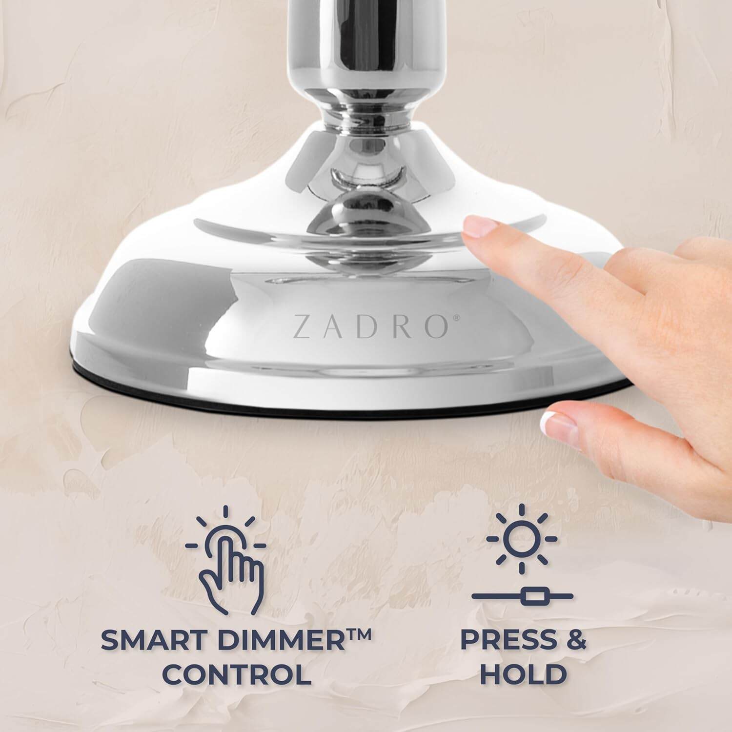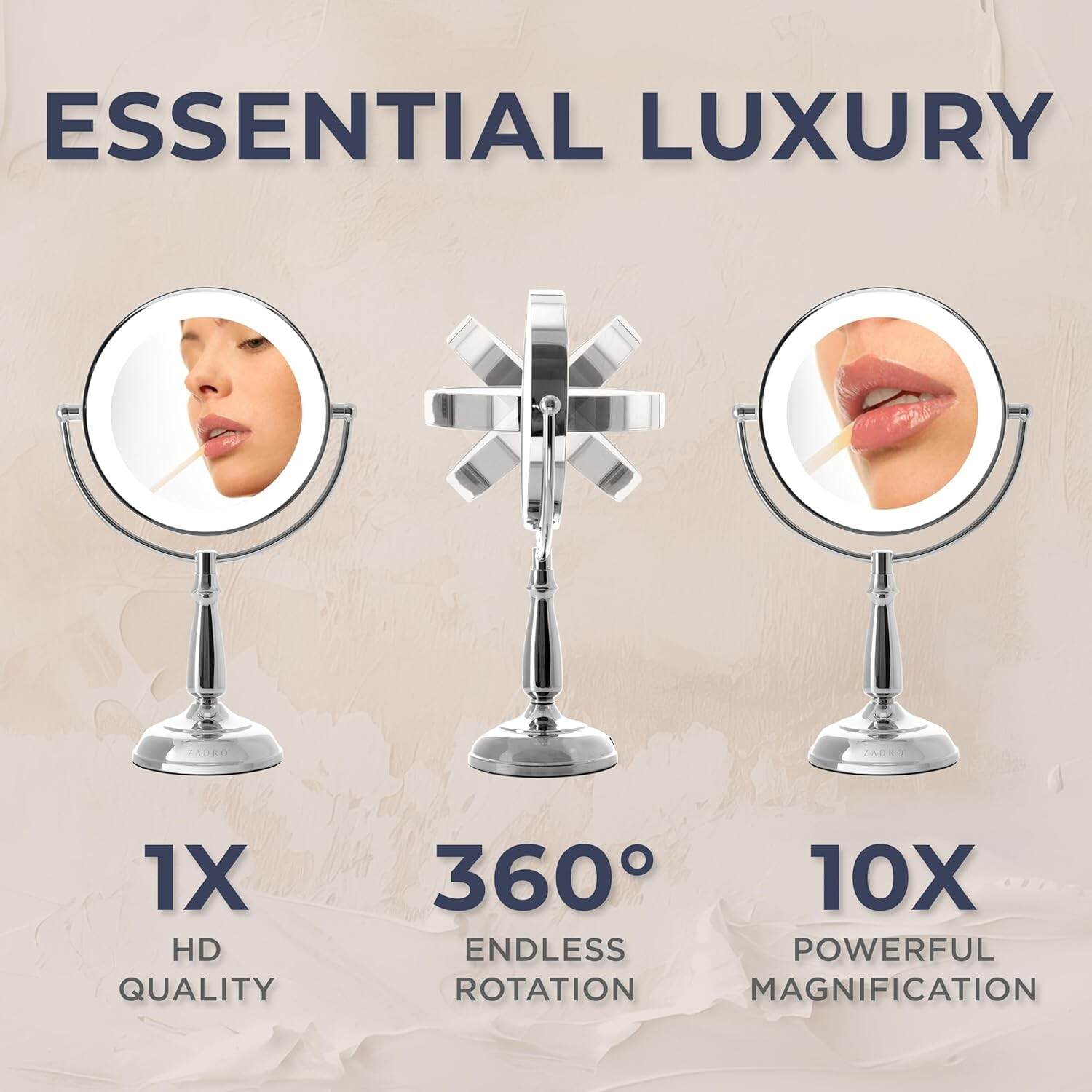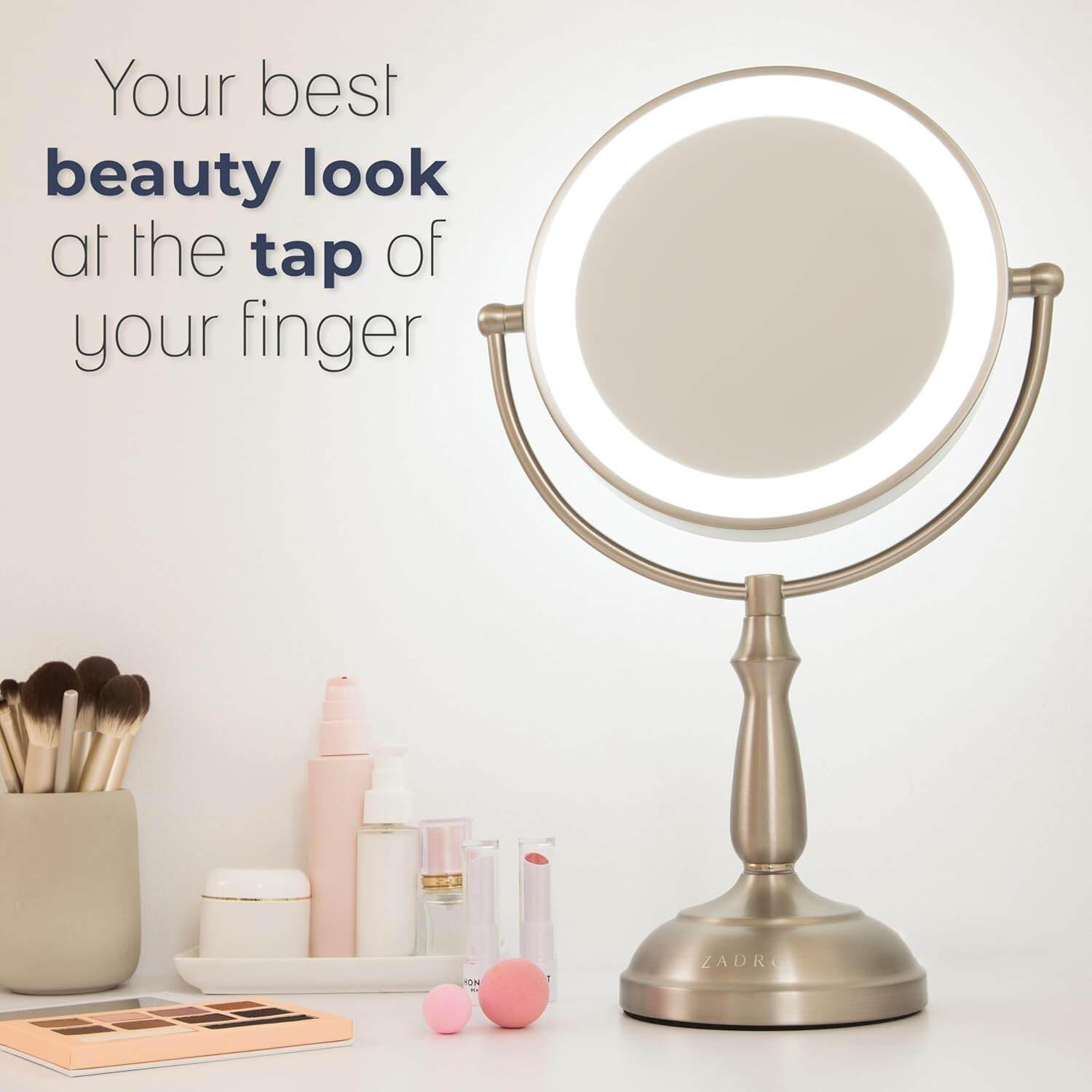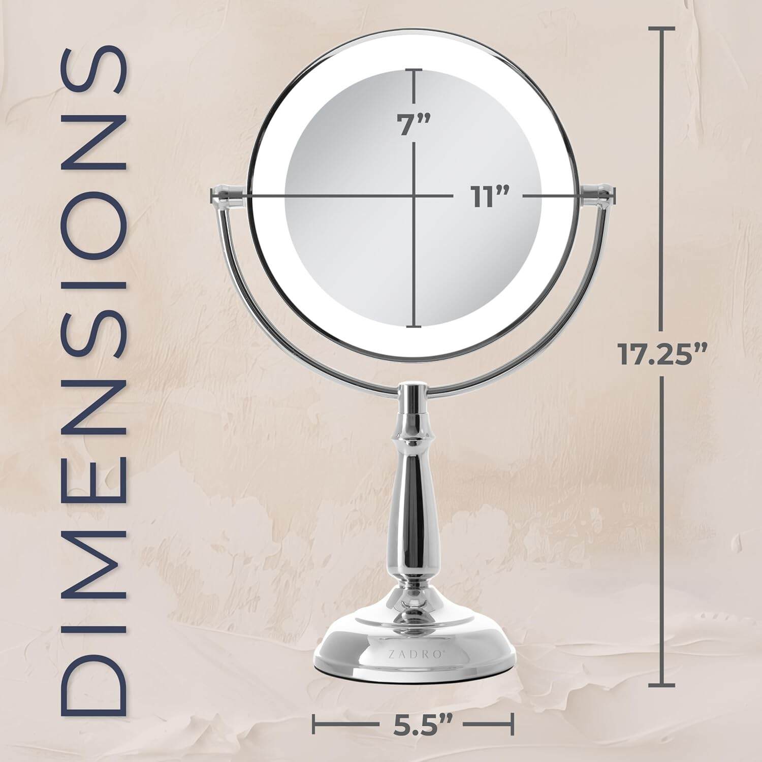 DIMENSIONS - This Zadro LED lighted makeup mirror, thoughtfully designed with an adjustable touch base, stands at an elegant 17 inches tall and 11 inches wide, providing a compact yet spacious frame, while its 7-inch reflective mirror offers a perfectly balanced viewing area, allowing for a crystal-clear, enhanced reflection that is ideal for all your makeup, grooming, and beauty routines, all with the added convenience of customizable lighting and touch-sensitive controls for a personalized experience.